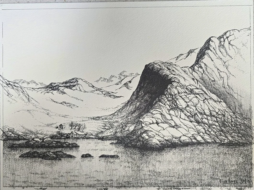 12/1/2025: You never know when an old sketch may prove valuable. Today an old family friend asked if I had any sketches remaining from Norway. I dug around and found these two (below). The first is a navigational light at the entrance to a small harbor in the Lofoten islands; the second is my very loose impression of a scene I saw only fleetingly as we passed by it on the Hurtigruten (coastal steamer). Once I get them matted and framed, our family friend will be their new proud owner…